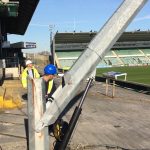 Just started work on the removal of lights from the 16mt column. Hydraulic ram used to lower the column with 10 x 2kw asymmetric lights on. The lights will then be fitted onto the corner of the roof of the stand behind the goal. #football #football-floodlights #footballlights #stadiumlights #stadiumfloodlights #floodlights #floodlighting #sportslighting #sportslights #sportsfloodlighting #specialistfloodlighting […]