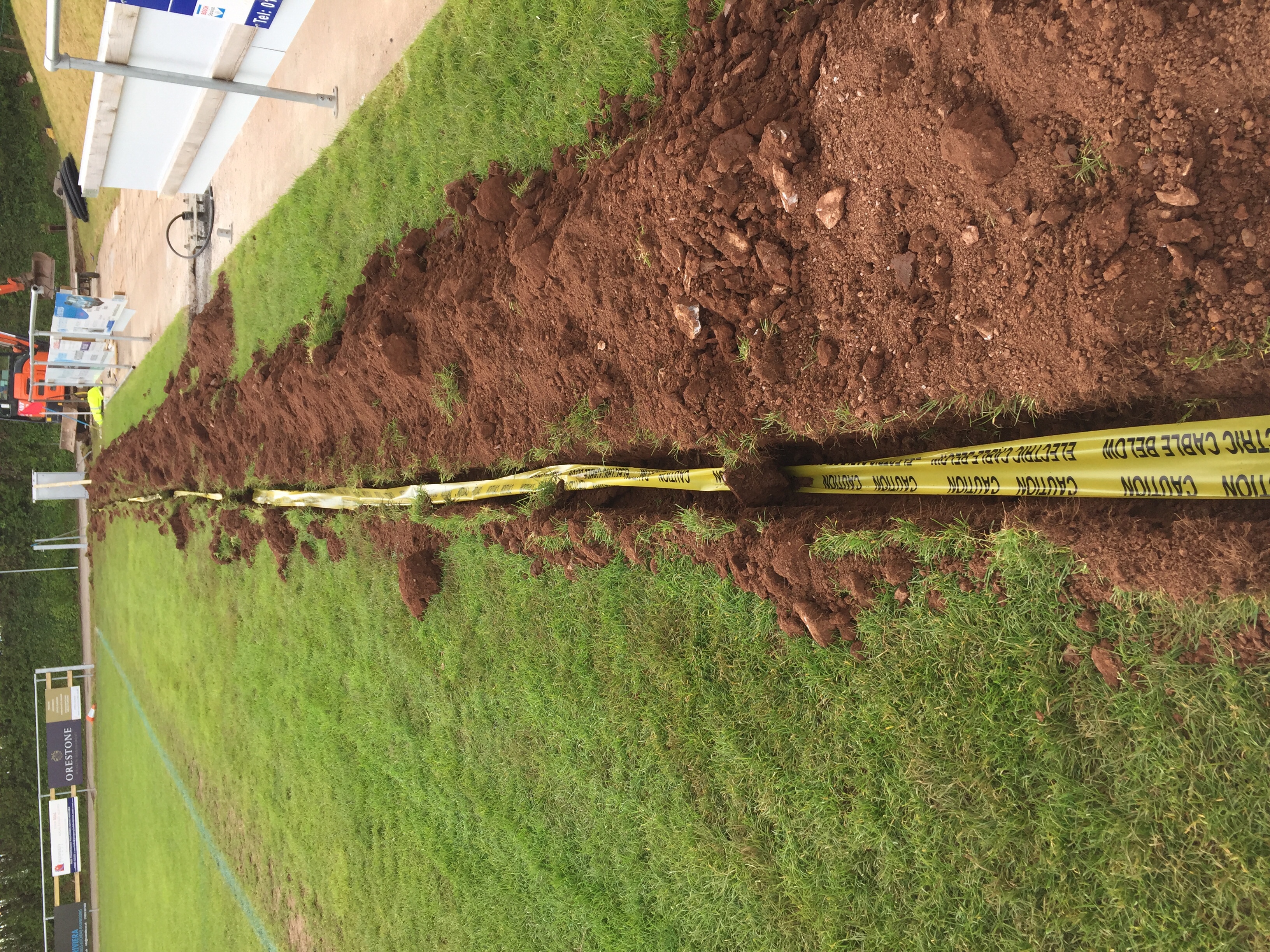 1st phase for the new installation of Floodlights. Trenches, concrete pads and cables laid.