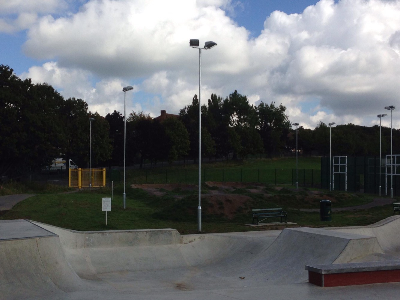 Harold Hill Kim Prestwood 18th September 2017 Uncategorised MUGA’a, Skate Park and BMX track lit with 8mt columns and 400w asymmetric lights. Half of the lights on each area switch off at 21.25pm and the other half switch off at 22.30pm to give safe access from the three areas. Share on FacebookTweetFollow us