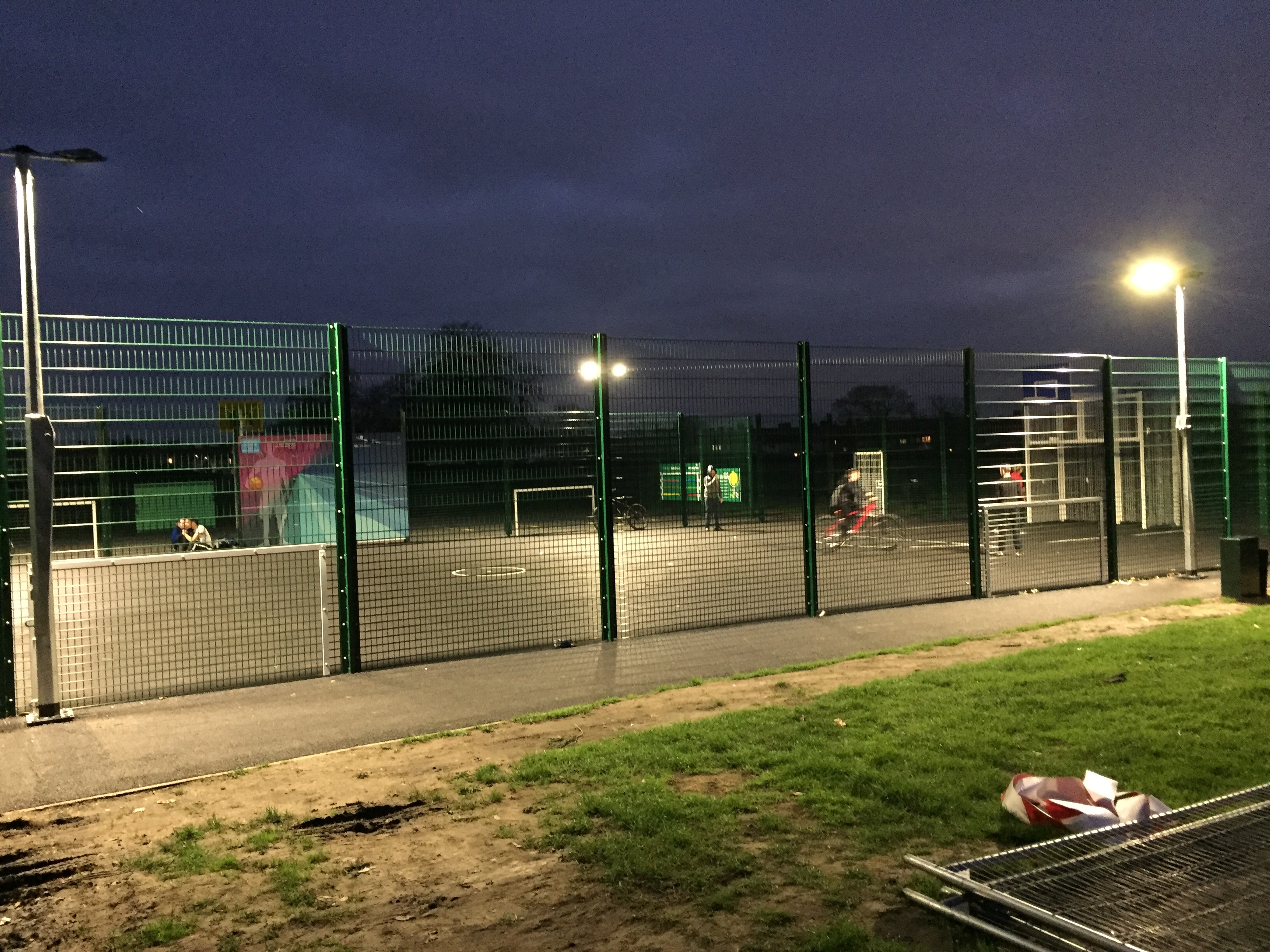 30m x 15m MUGA in Dagenham. Using mid hinged columns and asymmetric LED’s. The kids were over the moon, there faces were so pleased to see !!!