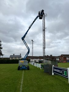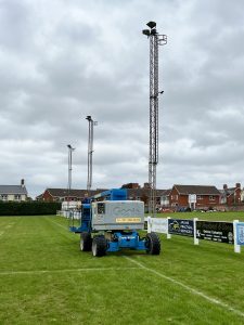 Called in to service the lights at Wellington Rugby Club. When we arrived the asymmetric lights were aimed straight onto the pitch and tilted up in the air acting like a symmetrical fitting !!