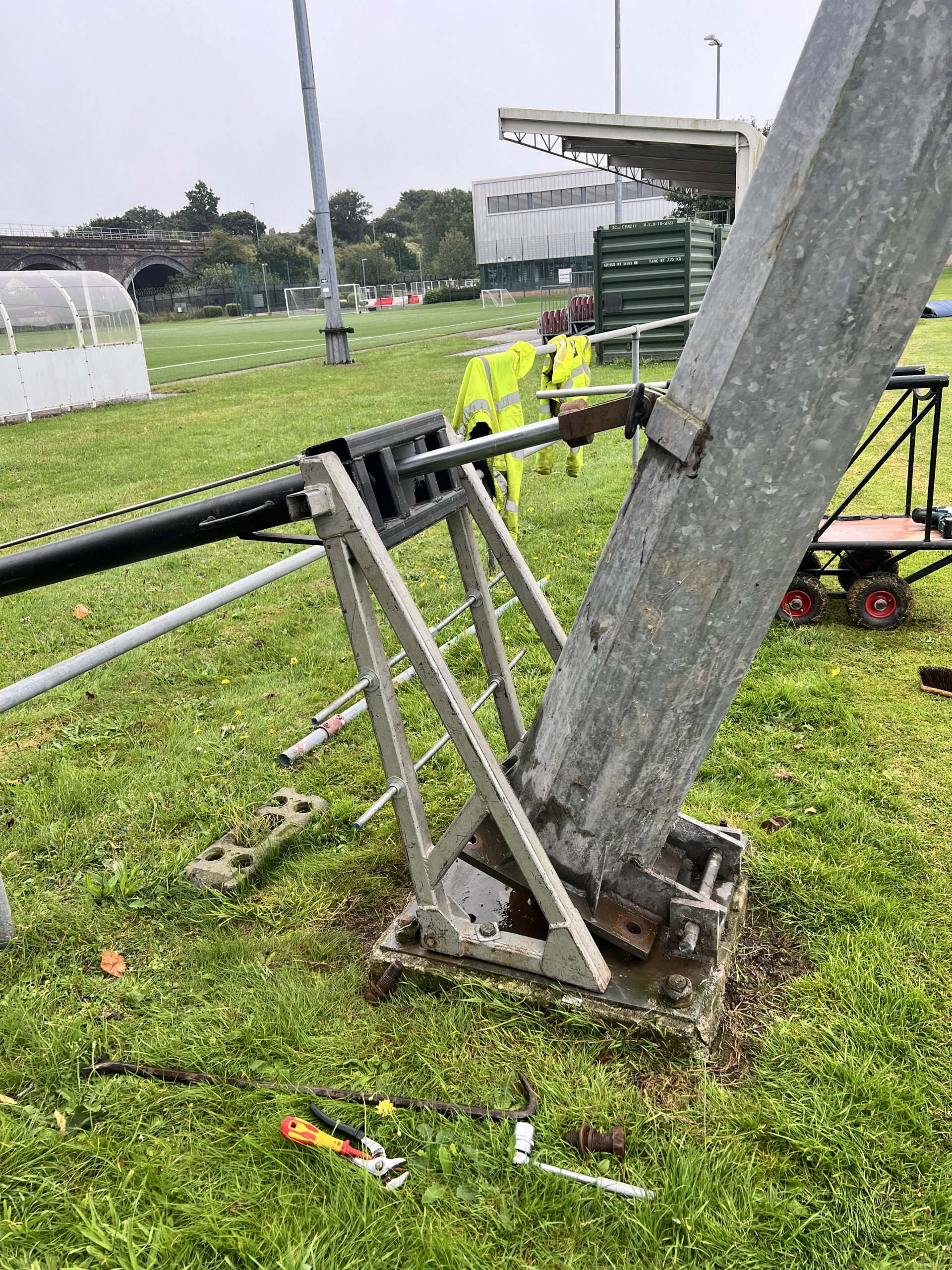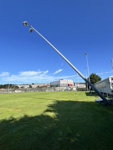 We lowered all the Christies Columns with our own Hydraulic Ram. Sports Lighting has 10 different Hydraulic Rams to lower 95% of columns from 4mts to 22mts high.