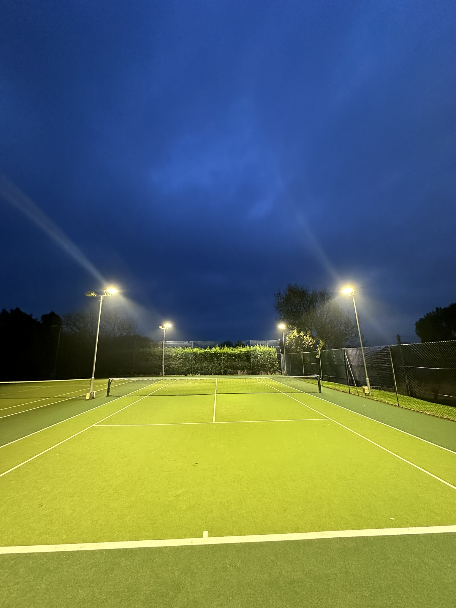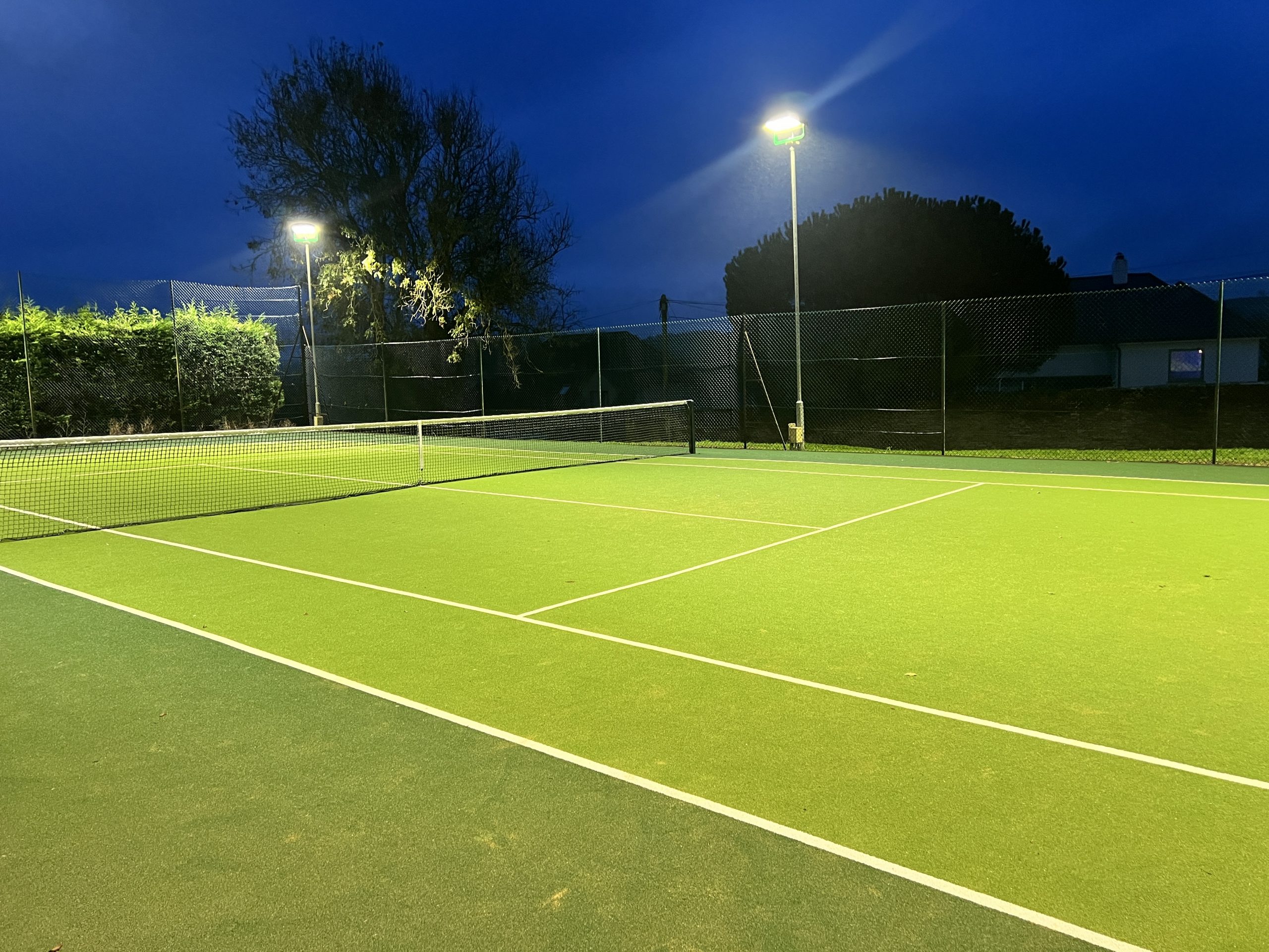 We removed the old Tamlite 1000w fittings we installed approx 15yrs ago and replaced with state of the art Philips Clearfloods at Kingsbridge Tennis Club.