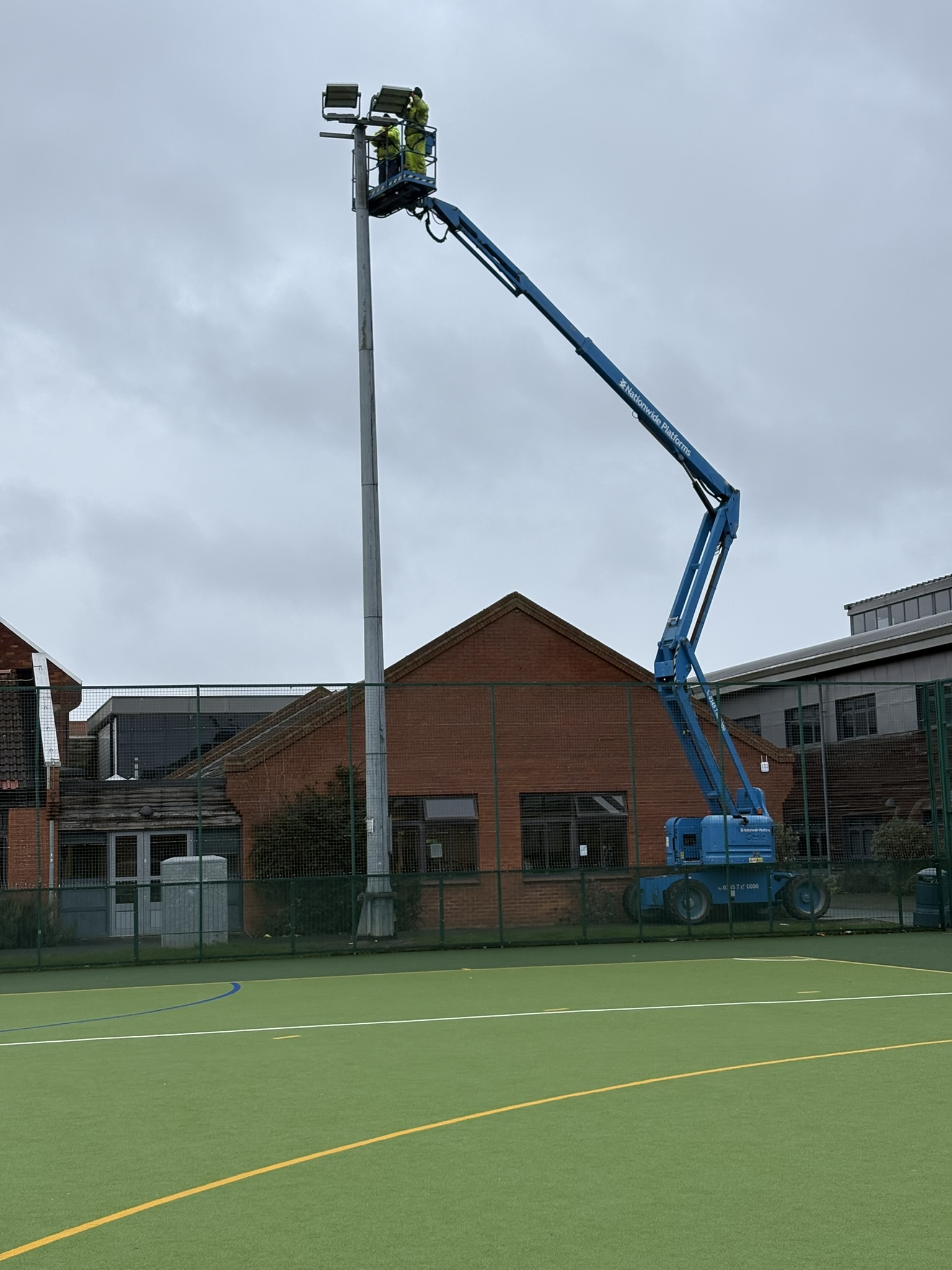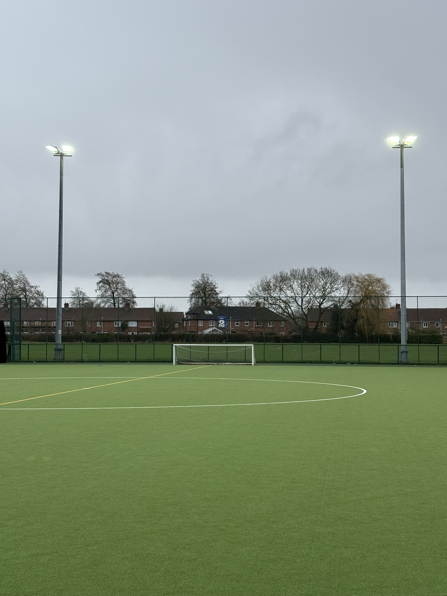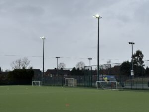 3g Hockey/Football Pitch. Removed 24 old Metal Halide Fittings. Replaced with 16 state of the art Philips LEDs to give an average lux level of over 350 lx. Brilliant uniformity. The client was well please.
