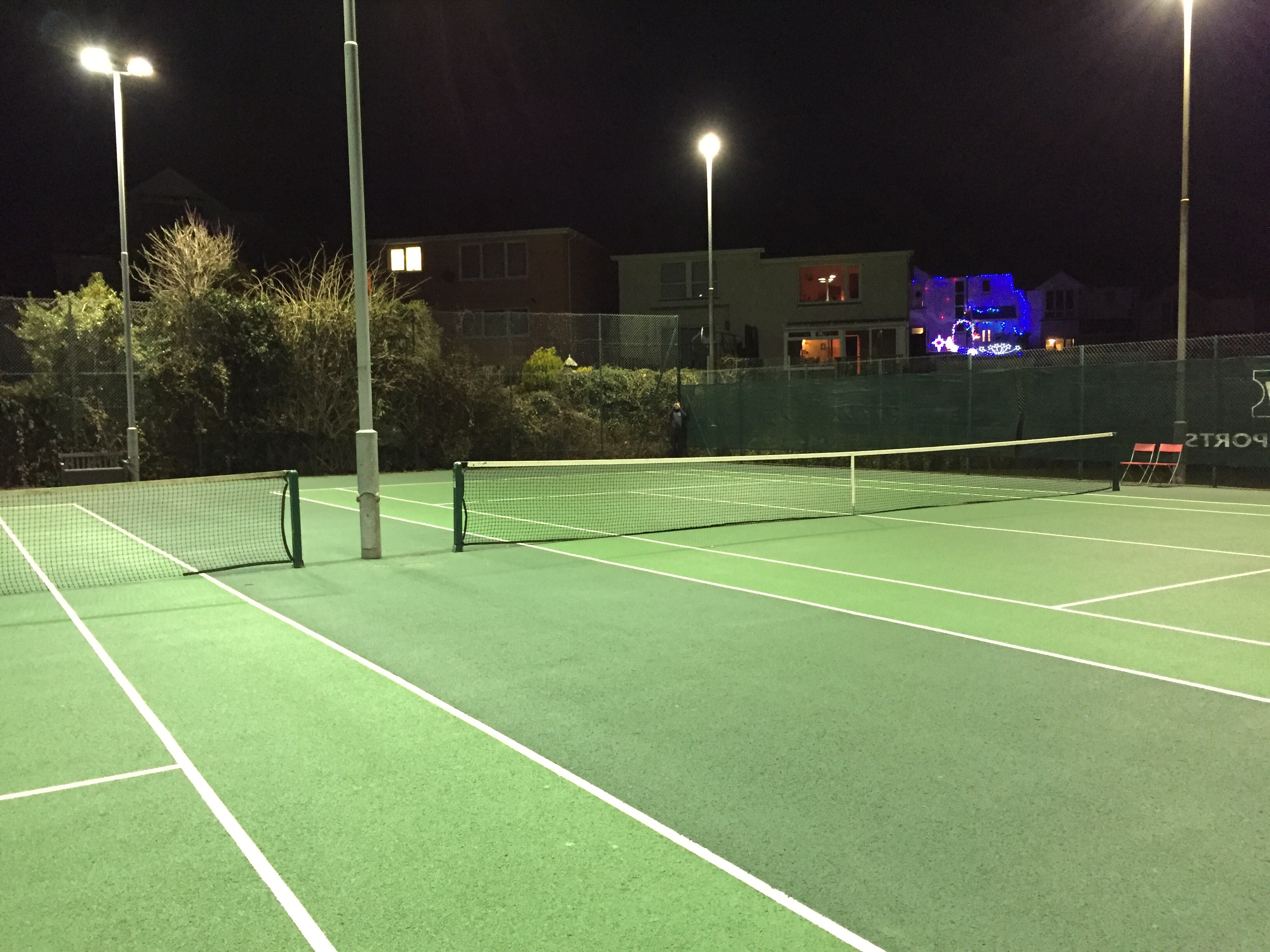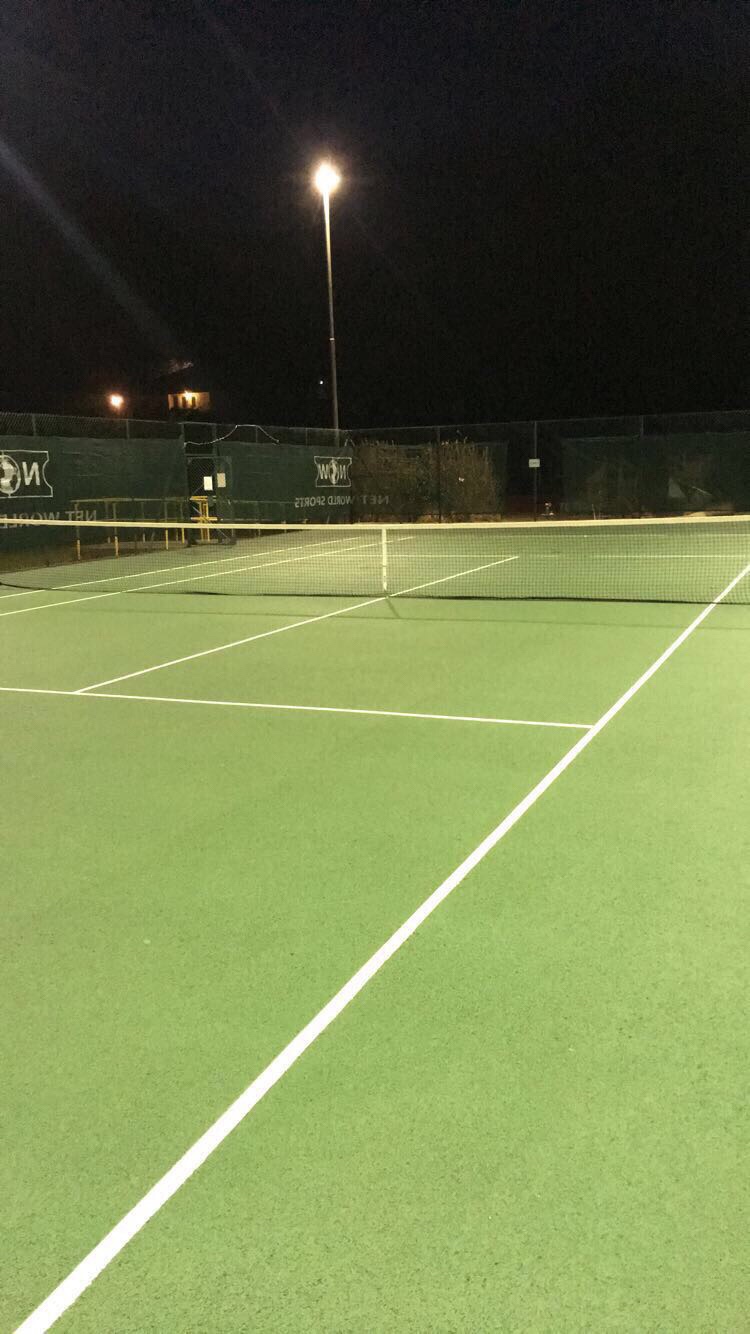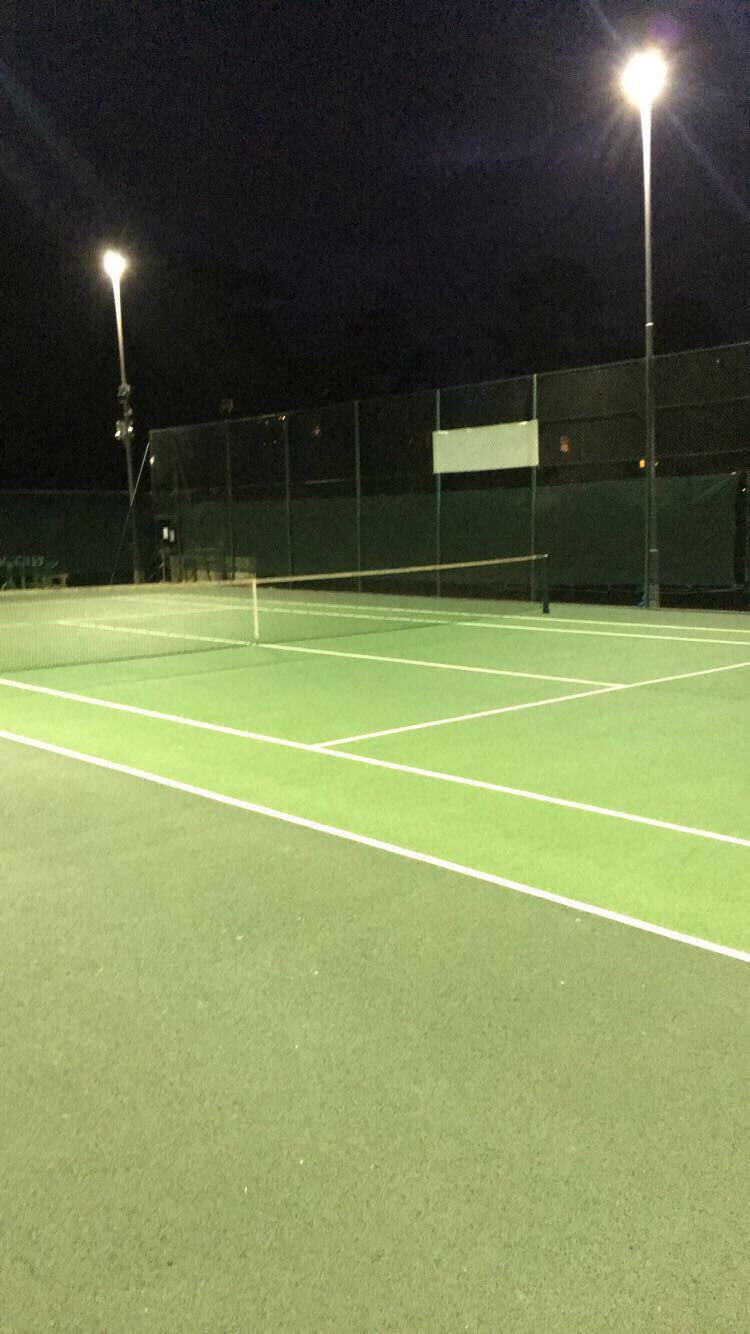 Old symmetrical fittings taken down and replaced with new 400w asymmetrical fittings. Well pleased with the lux levels. 2 x coin meters controlling the public run tennis courts. Another superb job by Sports Lighting.