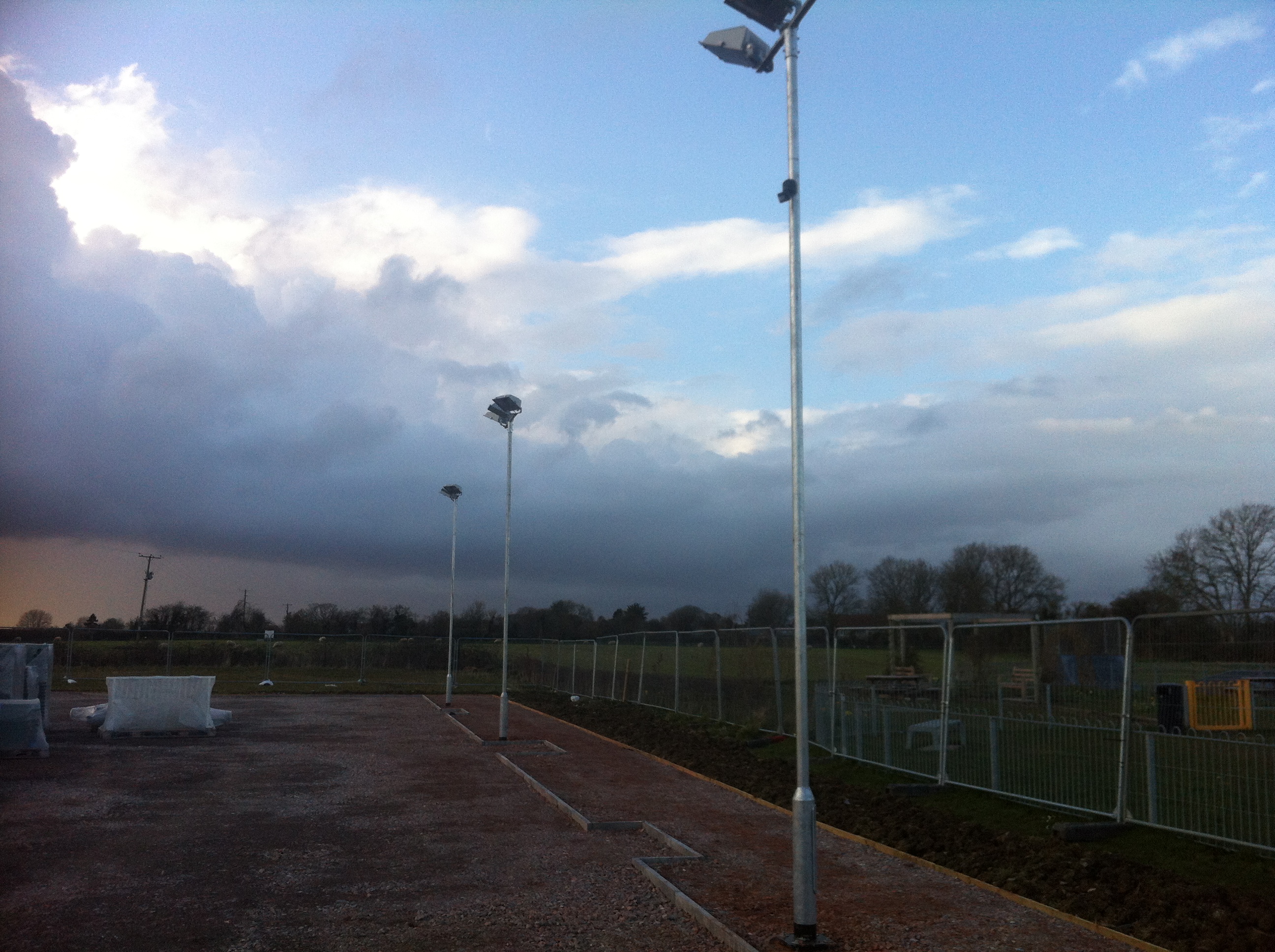 A side-lighting system using a minimum of two pairs of columns is normally the most satisfactory compromise for small areas. The column heights and spacing will depend on the equipment selected and other specific sire requirements (e.g. planning restriction, light spillage etc), but in general a minimum mounting height of 6-8m should be satisfactory in providing reasonable uniformity and controlling glare.
